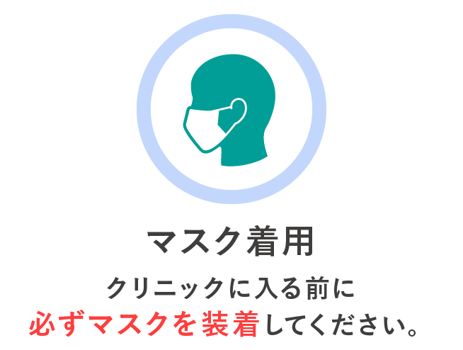 上記に該当する方は、時間をずらして別室で診察させていただく場合や保健所・他の医療機関へ相談いただく場合もございます。